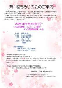 【つくばLSC】令和8年度第1回もみじの会のご案内 2026.04.10 新年度が始まり、皆さまも新たな気持ちでお仕事に取り組まれていることと思います。このたび、今年度第1回の「もみじの会」を開催いたします。今回は、勤続10年以上の方の表彰も予定しております。皆さまとお会いできますことを、心より楽しみにしております。 もみじの会ご案内