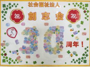 とりあえず、上郷事業所の玄関入った正面のカベに貼った心のこもった寄せ書きを